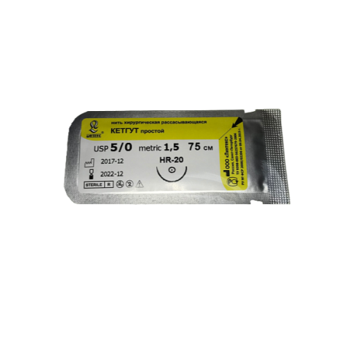 Шовный материал 5/0 Кетгут производства Линтекс применяется для соединения мягкой ткани и накладки лигатур в стоматологической хирургии. Вызывает умеренную воспалительную реакцию, целиком рассасывается в сроки от 60 до 90 суток.