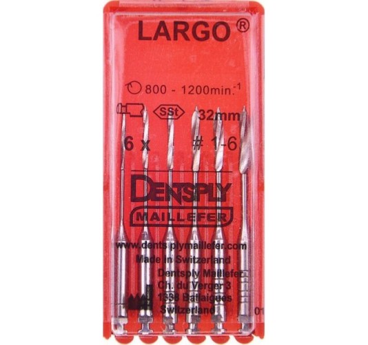 Ларго № 4 – эндодонтические корневые сверла, предназначенные для расширения прямых участков зубных каналов. Это машинный инструмент, закрепляемый в ротационном наконечнике, работающий на скоростях 800-1200 оборотов в минуту.